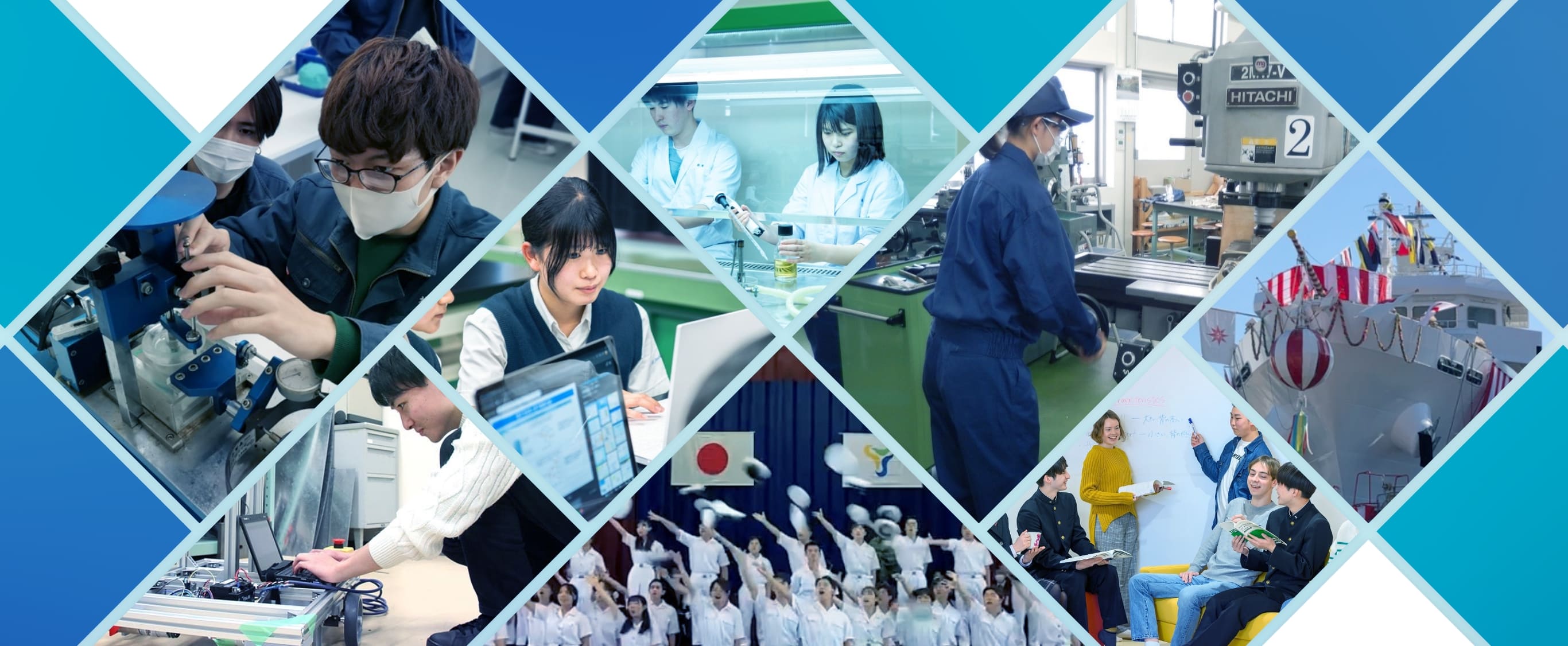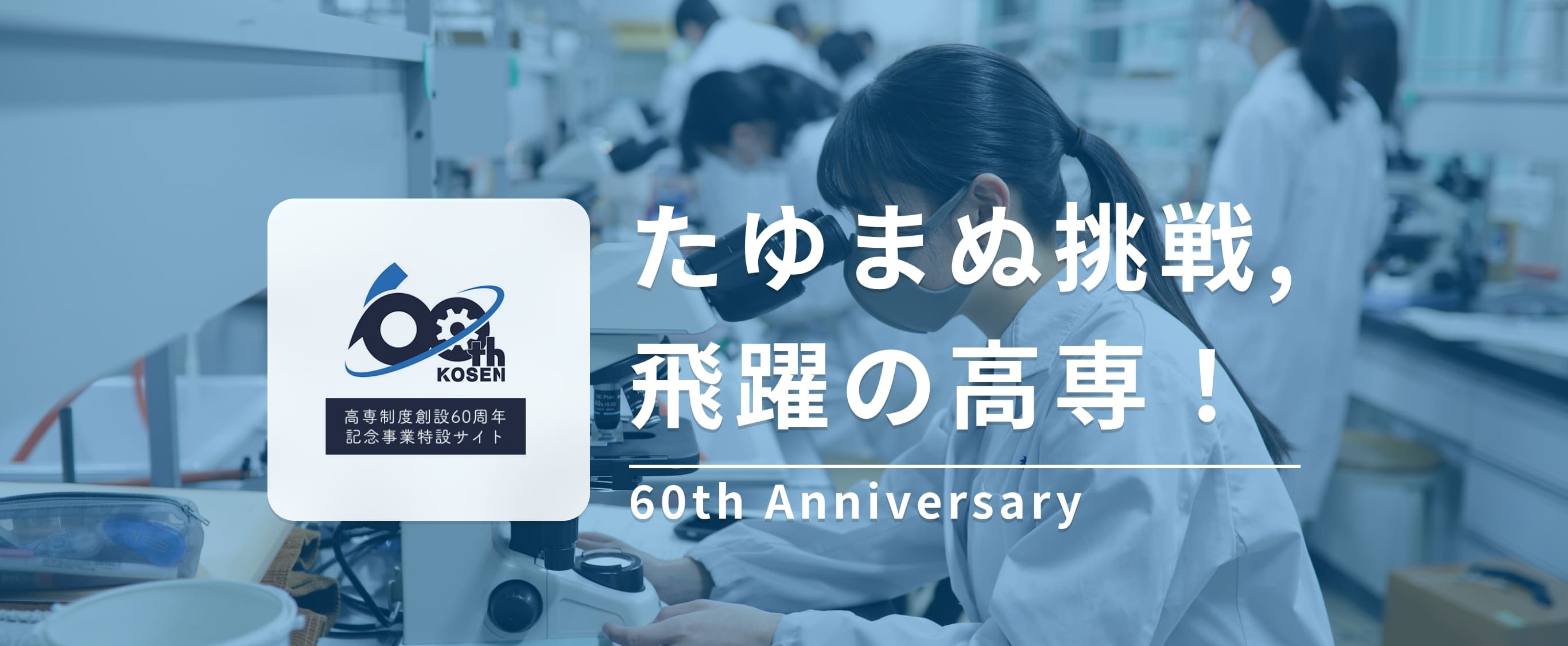高専は日本独自のユニークな教育機関で、社会が必要とする技術者を育成するため、中学校卒業後の15歳から入学できる5年制の高等教育機関であり、2022年に高専制度創設60周年を迎えた歴史ある教育機関です。実験・実習を重視した専門教育を早期の段階から行うことにより、卒業時には大学と同程度以上の知識・技術が身に付けられるカリキュラムが特長です。